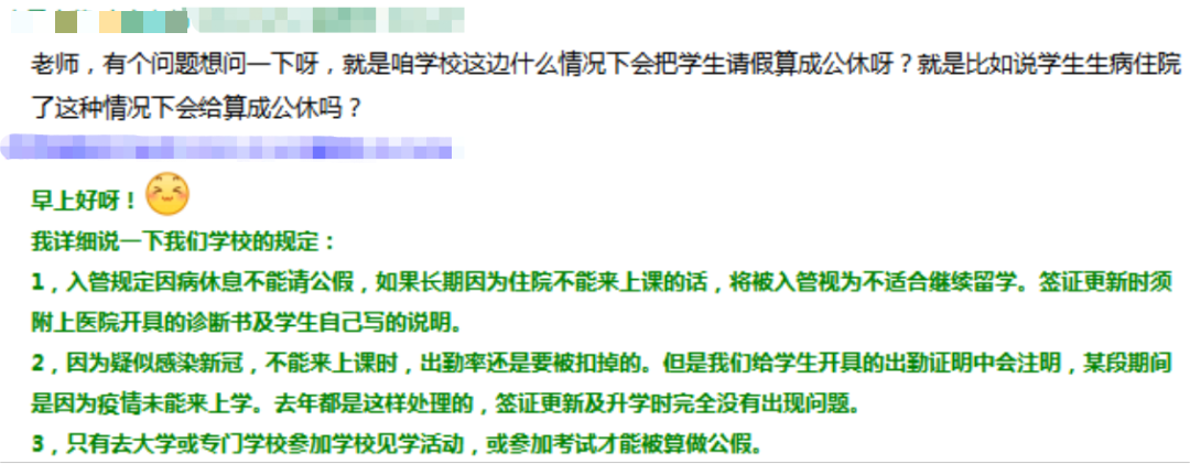 与上文提到的部分相同,因非传染性疾病请假不算做“公休”,新冠、流感等疾病被视为传染性疾病。如果长期住院的情况,在被视为不适合继续留学。更新签证时需要向入管提交医生开具的详细诊断说明。