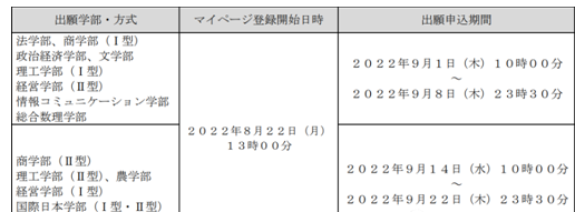 其中,国际日本语学部可以Ⅰ形和Ⅱ形一起报名。而经营学部、商学部、理学部不可以一起报名(不能并愿,只能选择其中一种选考方式)