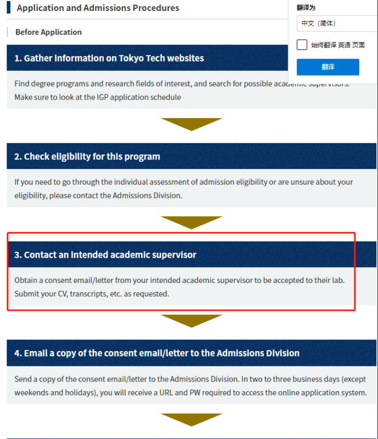 上图为东京工业大学的IGP项目,大家注意第三条,在申请该项目以前,需要提前和导师联系,在正式出愿的材料中,还需要上传导师内诺接收的邮件截图。
