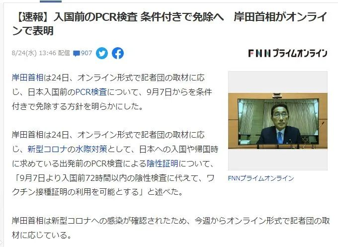 日媒称:现在日本政府内部正在围绕“入境前72小时核酸证明”是否有必要提交的这个问题进行讨论。也就是说,最后一项核酸检测也似乎也要被取消了。