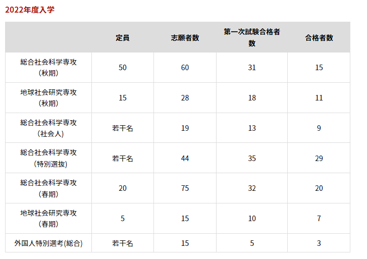 群馬大学是一所中等的日本地方国立大学,其中社会情報学研究科内有众多分野各个研究方向,学生可以选择余地交大。该研究科也采取了材料审查+面试的审查模式,对于笔试焦虑的同学,一个中等国立大学的offer,可能也是一个不错的选择!