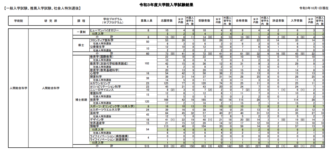 筑波大学是一直以来受到留学生们欢迎。其中的人類総合科学研究群以包容性著称。其中包含人类系、体艺学际系以及情报系等很多方向。