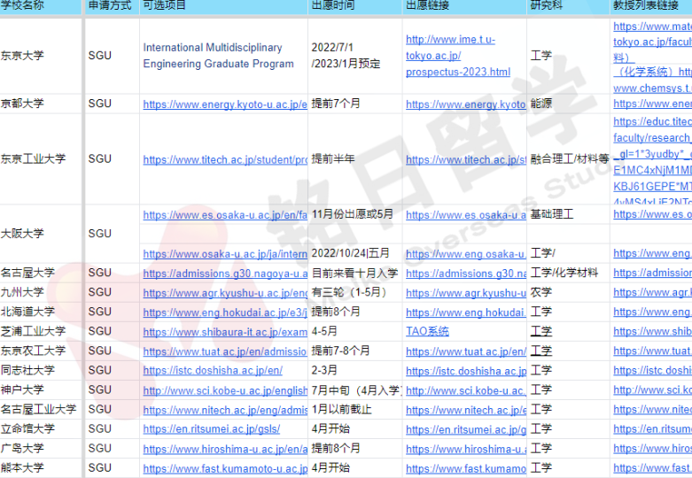 为什么要推荐九大农学的SGU项目呢?因为工科的材料化学要去日本参加考试,这限制了学生入学的便利性。所以,悄悄告诉同学,这里面有农业化学、生物化学类的研究室可以申请哦!而且难度比工科低很多!