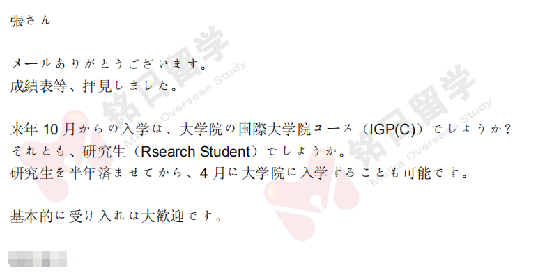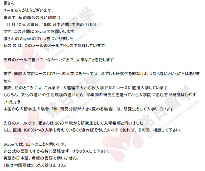 于是趁热打铁,我们继续套磁东京工业大学,经历了面谈和计划书的修改,终于也得到了东京工业大学教授的认可。并且教授推荐学生直接申请IGP(C)的硕士课程,可以说是双喜临门。