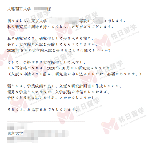 第一波申请,很快就收到了名古屋大学的导师回信,通过套磁沟通,一周时间就顺利取得了导师内诺。