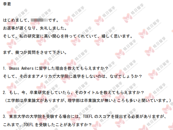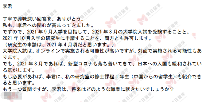通过套磁,顺利拿到东京大学导师内诺,同时,导师还给学生介绍了研究室的前辈,开始了修士考试的准备。