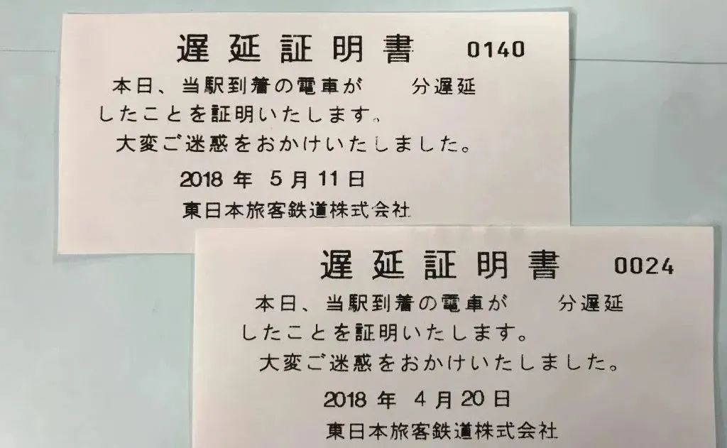遇见电车事故引起的情况时,同学们一定记得向电车站索要“迟延票”,用于和学校老师解释迟到问题。但如果“迟延票”上只标明迟延时间和你迟到的时间不吻合,有可能学校还是会扣出勤率。