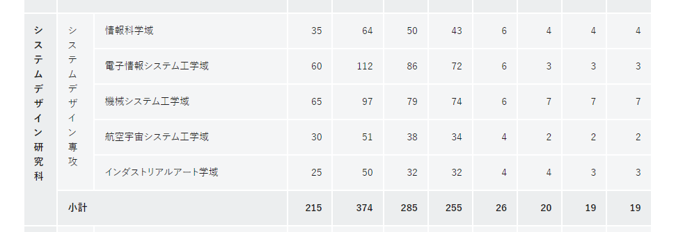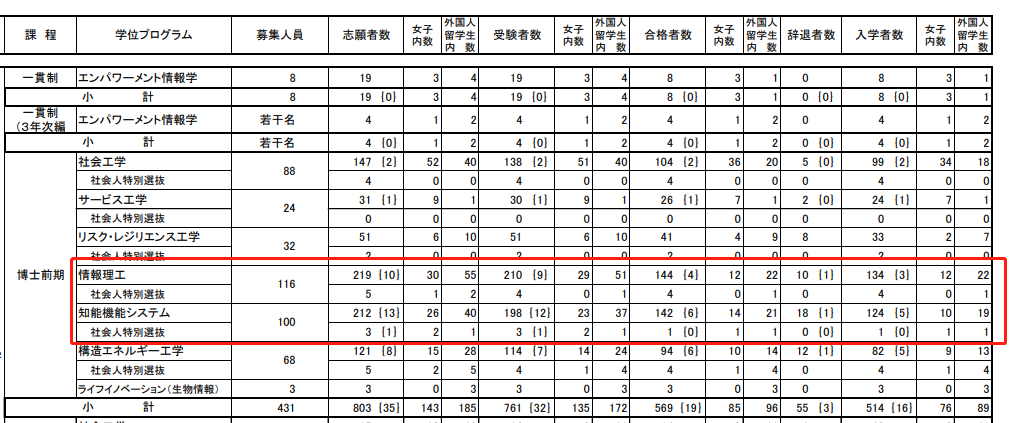 计情報システム学専攻合格率约为72%