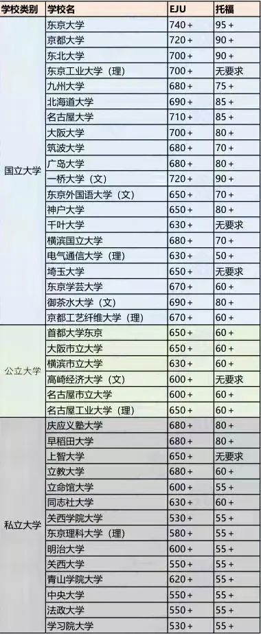 最后小铭老师提醒大家,出愿时提交的志望理由书同样非常重要,丝毫不亚于EJU及托福成绩。以上就是主流日本高校对留学成绩的要求,大家可以根据自己的考试成绩申请合适的院校,希望大家都能顺利进学。