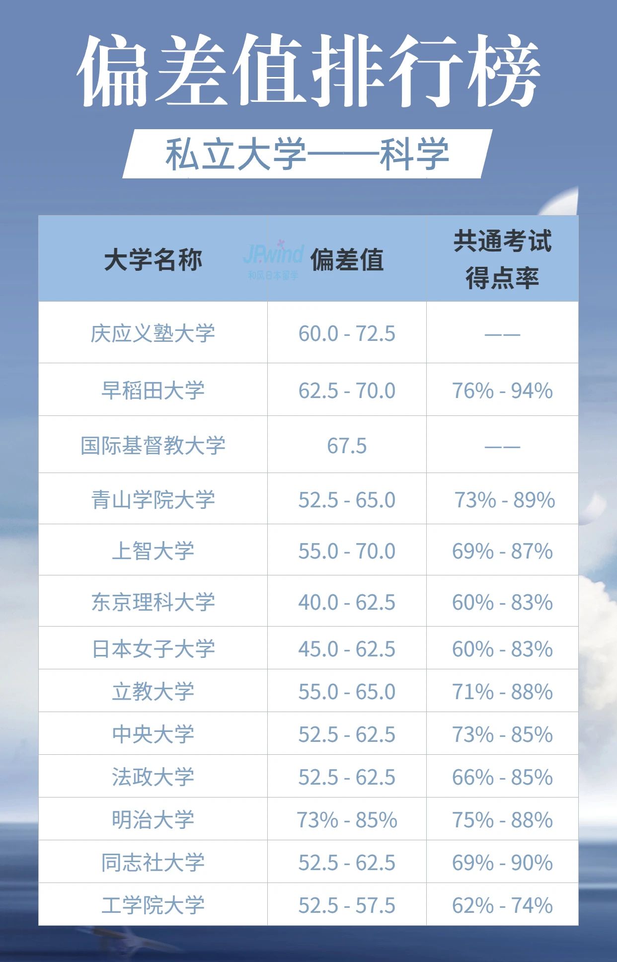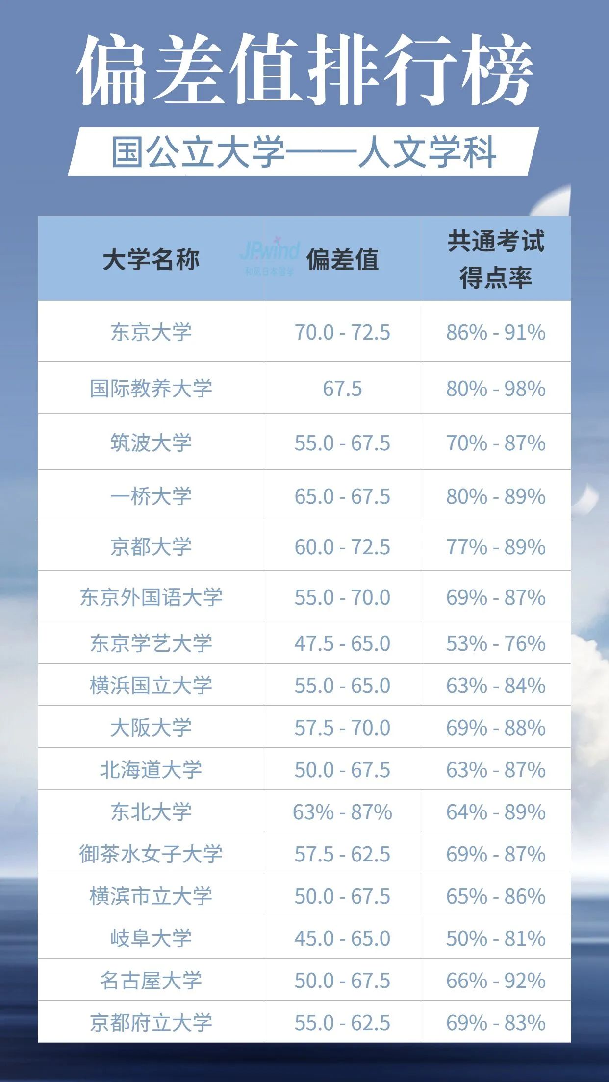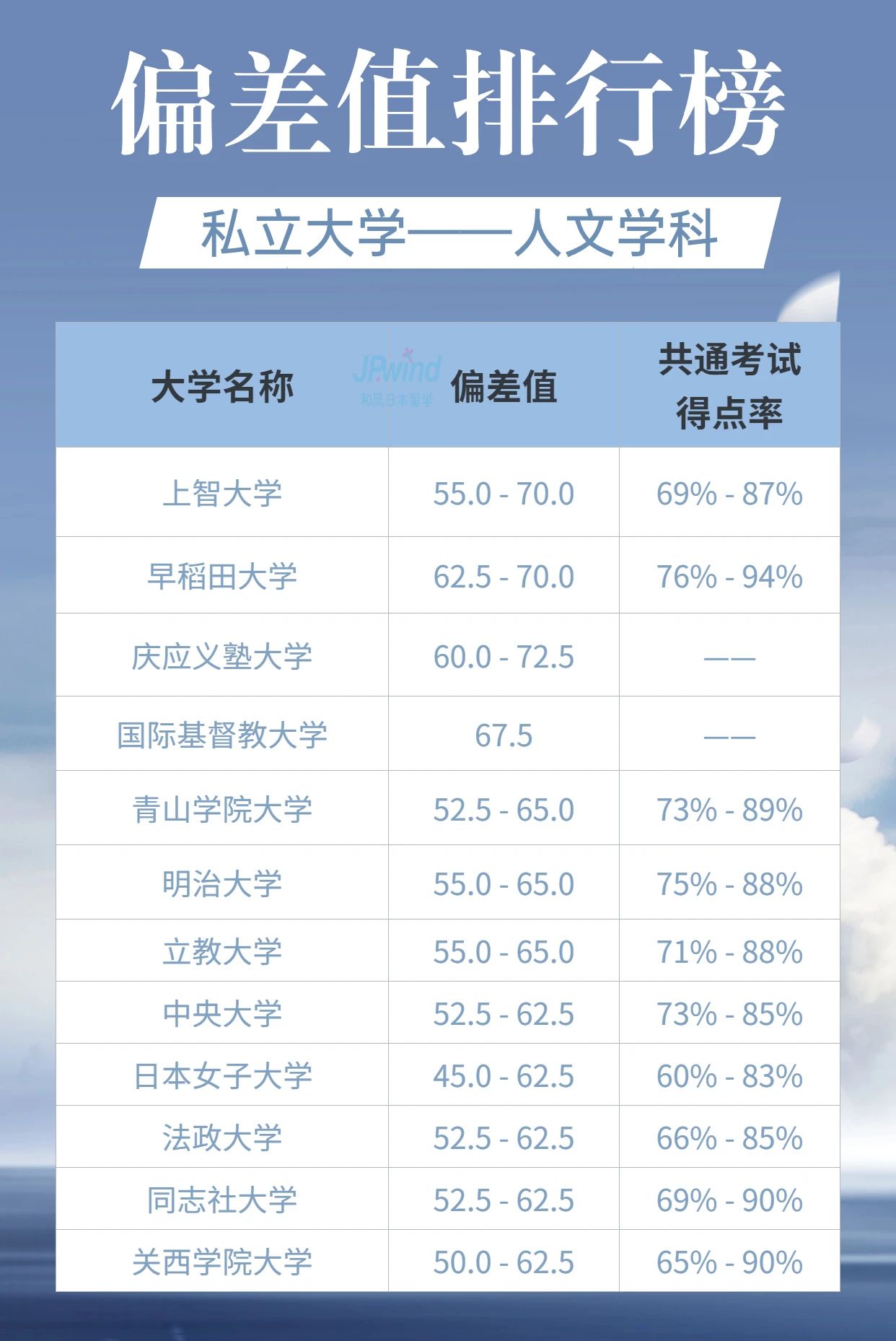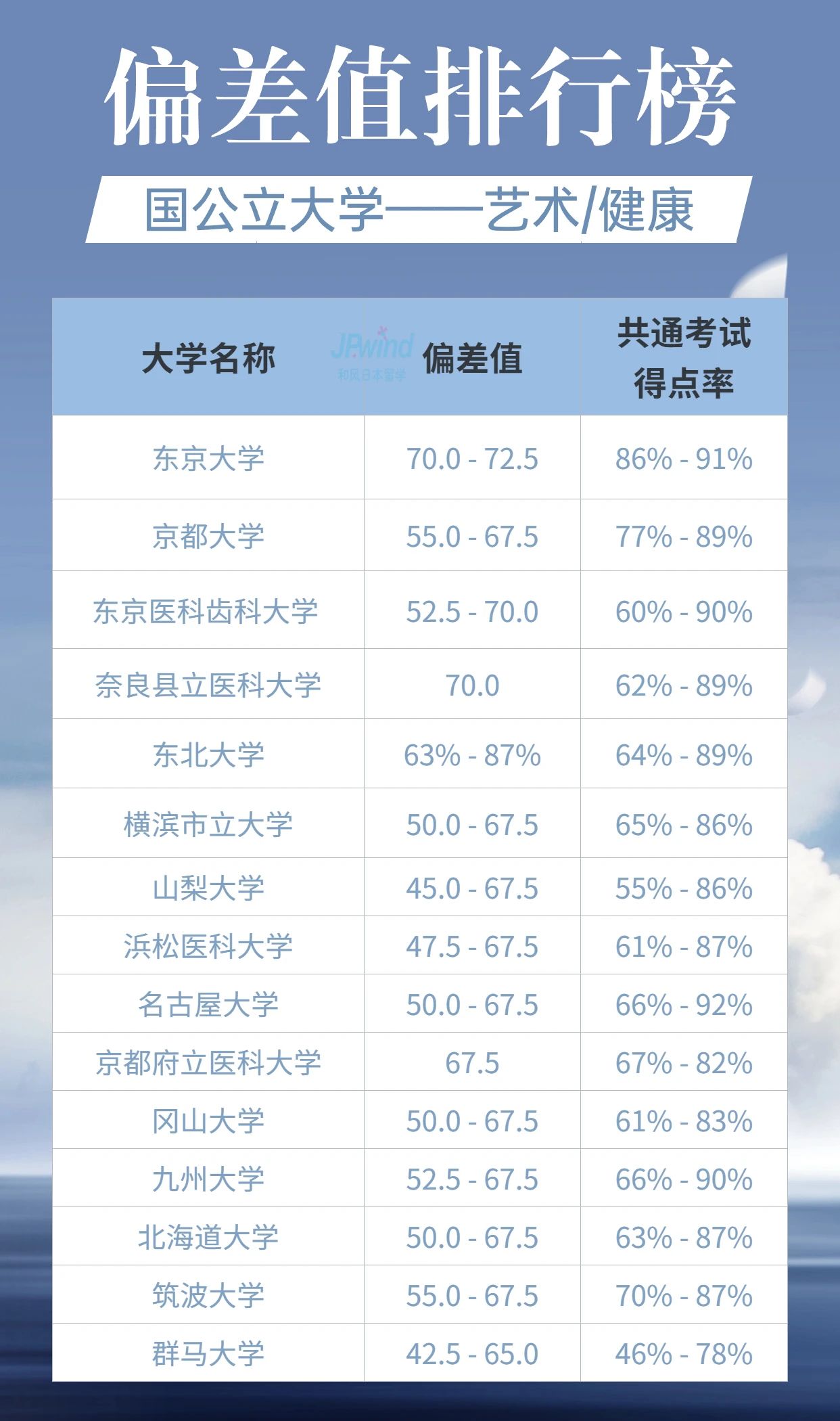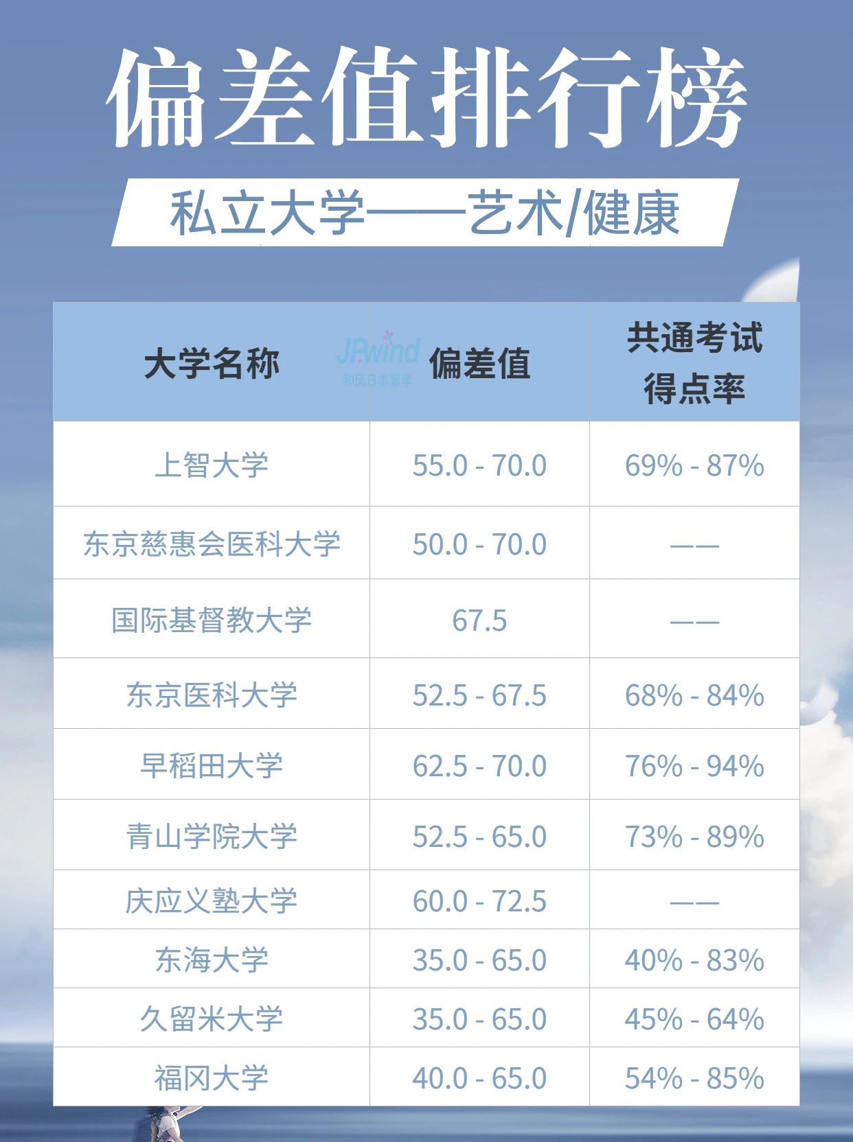我们在日本选择晋升院校时,常常会参考“偏差值”,日本社会对偏差值是非常认可的,它可以直接反映学习水平及能力。此外,日本私立大学及国公立大学都定期推出偏差值排名,通常以人文学科、科学、医疗系统和艺术/健康等领域进行评比。今天小铭老师就给大家展示一下最新的排名状况。