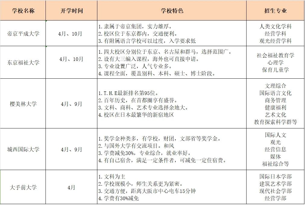 在这其中,日本政府对海外留学生赴日留学也推出了一定的支持政策,比较吸引人的还是留学生奖金更加丰厚,在留签证办理更加便利等措施。另外,不少日本大学也开始向中国留学生开启了更优越的招生计划,很多大学在中国直接招收本科学生,同学们之需在国内报名级考试,录取后直接赴日读本科。