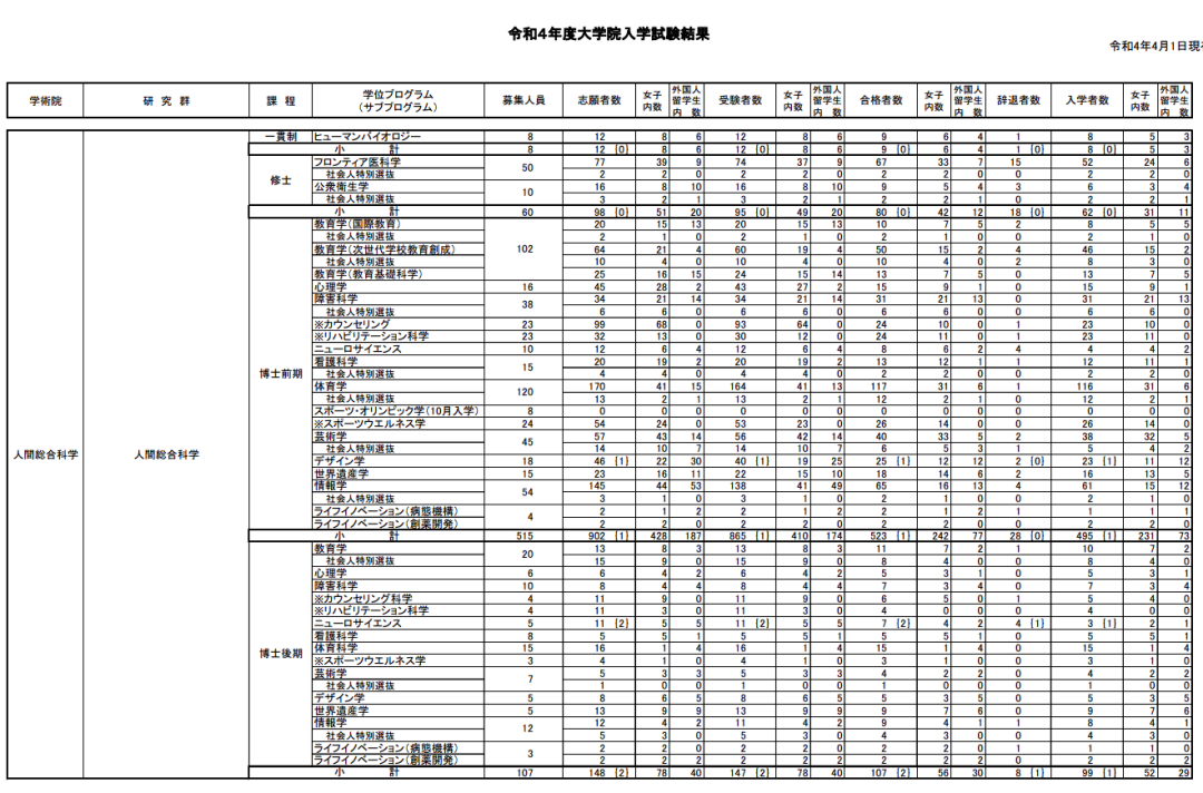 筑波大学是一直以来受到留学生们欢迎。其中的人類総合科学研究群以包容性著称。其中包含人类系、体艺学际系以及情报系等很多方向。