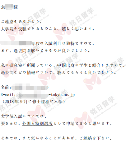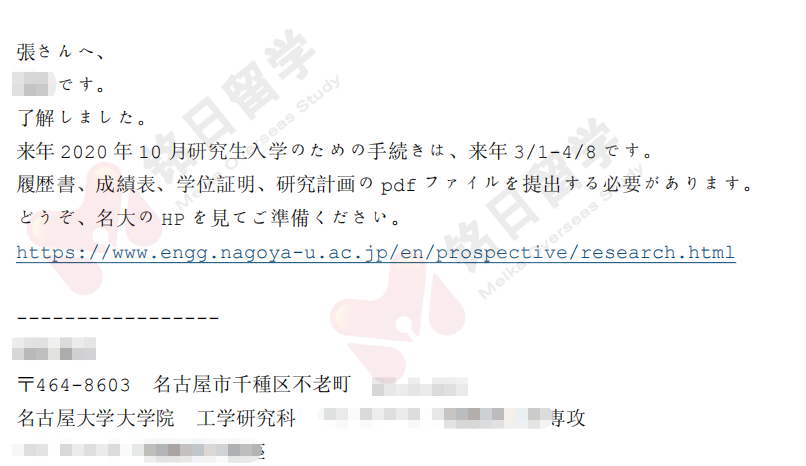 第一波申请,很快就收到了名古屋大学的导师回信,通过套磁沟通,一周时间就顺利取得了导师内诺。