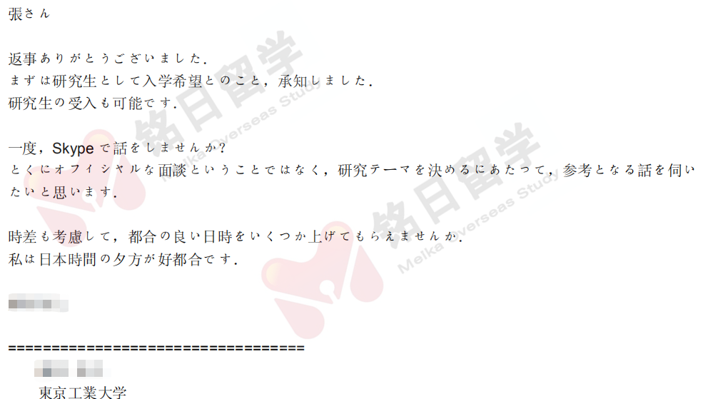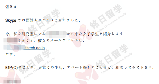 于是趁热打铁,我们继续套磁东京工业大学,经历了面谈和计划书的修改,终于也得到了东京工业大学教授的认可。并且教授推荐学生直接申请IGP(C)的硕士课程,可以说是双喜临门。