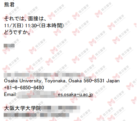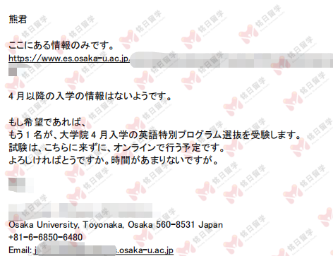 拿到京都大学内诺保底的情况下,熊同学还是希望能尽量申请到本专业的方向,进行兴趣方向的研究。于是,在我们通过大学大阪大学的各种内部资源推荐,AAD审查之前就提前获得了哪些导师是可以收研究生的信息。然后和学生沟通指导,最终确定了目标导师。