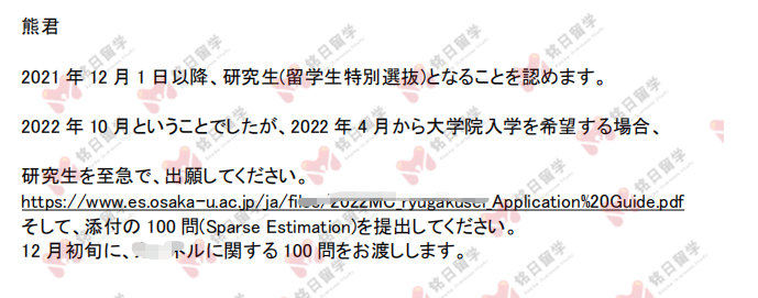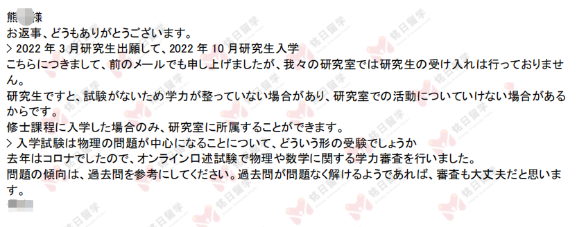 通过套磁,顺利拿到大阪大学导师内诺,同时,导师还给学生介绍修士考试的准备。